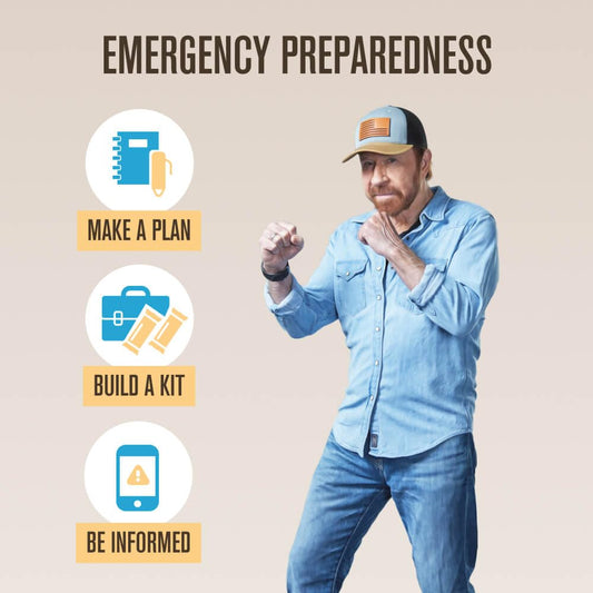 by Chuck Norris Roundhouse Provisions Survival Mode Emergency Ration Bars. Bug-out bag, Emergency, Hike, Ready To Eat Supply For Disaster, Hurricane, Flood Preparedness, Lemon shortbread, whole grain sorghum, 14 vitamins and minerals. 5 year shelf life, P